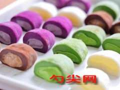 工藝:1、先來做卡仕達醬,蛋黃加入白糖攪勻,加入過篩的面粉攪勻,最后是這種流動性的蛋黃糊,奶鍋里加入純牛奶、白糖,開小火慢慢煮開。然后倒在蛋黃糊里,一邊倒一邊攪拌,再重新倒回到鍋里,最小火慢慢熬煮,一邊煮一邊不停地攪拌,直到變成這種濃稠的糊糊。糯米粿的餡料要稍微熬煮的濃稠一些。還可以做成其他口味的:斑斕口味的、紫薯口味的、巧克力口味的,最后可以加黃油也可以不加,口感不會有太大的差別。裝在碗中,保鮮膜貼面保存,常溫放涼,然后用打蛋器攪打幾圈,就細膩了。裝在裱花袋里,冷藏備用; 2、再來糯米皮,先把糯米粉與 泡多源K 干拌均勻,糯米粉分次少量地加入清水,拌成小顆粒的狀態(tài),可以手搓,也可以用料理機攪打細膩,最后是這種玉米渣的狀態(tài); 3、紗布提前打濕鋪在籠屜上,搓好的面粉均勻撒上去,蓋上紗布,開水上鍋蒸30分鐘左右。取出來倒在大碗中,容器提前刷油,最好在硅膠墊上操作防粘,稍微放涼之后,手套抹上黃油,開始揉搓,稍微變光滑之后再加入白糖繼續(xù)搓均勻,再加入清水,用抓捏的手法,直到面團把水分完全吃進去,最后加入黃油揉均勻,像這樣非常光滑拉絲的狀態(tài)就可以了; 4、均勻分成4等份,分別加入斑斕粉、紫薯粉、可可粉,我們得到了4種顏色的面團,保鮮膜密封冷藏2-3個小時; 5、面團取出來分成大約50克小劑子,稍微抻薄一點,擠上對應的餡料包起來。6、表面撒點干粉,放在油紙拖里,4種口味的糯米粿就做好了。