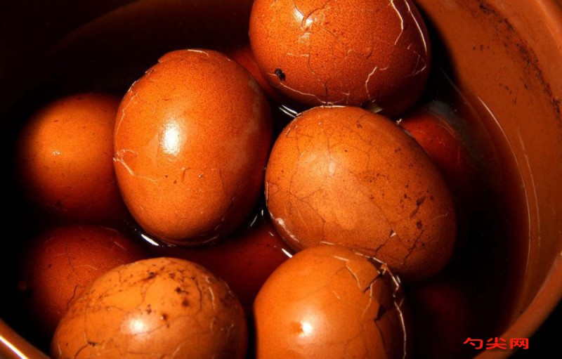 工藝:1.首先將雞蛋用清水洗掉雞蛋表皮的污漬后,再次用清水沖洗干凈,撈出控水,準(zhǔn)備蔥姜去皮洗凈,斜刀切大片。——(注意:制作茶葉蛋一定要將雞蛋清洗干凈,清洗雞蛋時,可以先將雞蛋用清水浸泡10分鐘后,再進(jìn)行清洗,這樣可以輕松洗凈雞蛋表皮的污漬了。)2.鍋中倒入適量清水,把洗好的雞蛋冷水下鍋,放入蔥姜片,適量花椒粒和2個八角,放入適量的紅茶葉,加入少許老抽,一勺生抽,適量食鹽。——(制作五香茶葉蛋時,最好選用紅茶,紅茶顏色紅亮,久煮不會發(fā)黑發(fā)苦,且入味后較清香。)3.開小火燒開,煮5分鐘后關(guān)火,將每個雞蛋用勺子均勻磕破雞蛋外殼,這樣可以使鹵水進(jìn)入雞蛋內(nèi)部,這樣做也是好吃入味的關(guān)鍵。——(注意:雞蛋煮制時,一定要冷水下鍋,且用小火燒開,切忌用大火,大火會使雞蛋因快速受熱而產(chǎn)生爆裂,從而影響雞蛋的完整以及口感。)4.接下來繼續(xù)開火煮10分鐘關(guān)火,關(guān)火后不要馬上撈出,將雞蛋浸泡2小時即可出鍋食用。