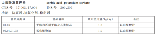 防腐劑、抗氧化劑以及相同色澤著色劑各自用量