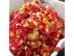 工藝:1、把辣椒洗凈,去除辣椒的把和根部綠色部分,用刀切成顆粒。用絞碎機(jī)把辣椒加工一次。2、把大蒜也切碎。3、把加工后的辣椒放在鍋里,同時(shí)再把醬和米醋也放在鍋里,然后點(diǎn)火煮沸。4、待涼后加入味精和精鹽,和切好的大蒜一起絞拌均勻。5、7-10天發(fā)酵后裝瓶封好。不發(fā)酵也能食用。放在低溫處保存(最好是放在冰箱冷藏室)可隨時(shí)取用。