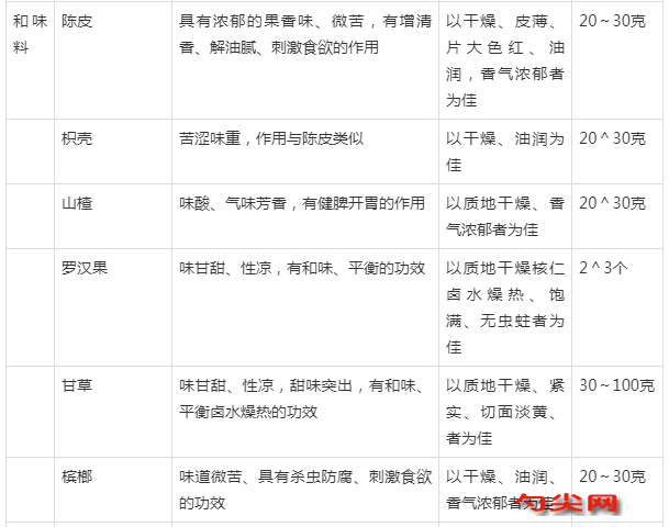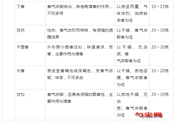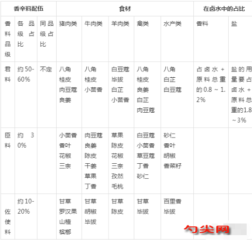 鹵水組方干貨表格:香料藥性基礎、甄別方法及君臣佐使配比公示表