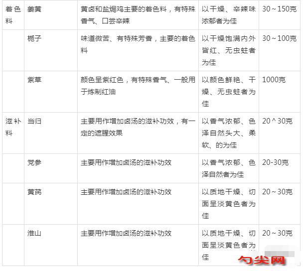 鹵水組方干貨表格:香料藥性基礎、甄別方法及配比公示表