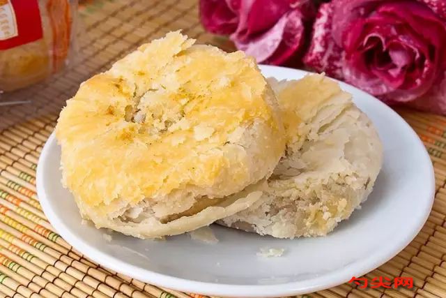 工藝:1、用水油皮面團把油酥面團包起來用搟面杖把面團搟成長橢圓形,摺疊后再搟長橢圓形皮。搟好的面片,從外往內卷起來,分成八個小劑子。(也可以把水油皮面團和油酥面團先分成小劑子后,用水油皮劑子包油酥面劑子,一個一個的搟皮折疊最后搟成圓形的面皮。)2、每個面劑子用搟面杖搟成圓形的面片,將鮮肉餡放在面片中央包起來,用手掌輕輕壓扁。(包的時候要注意,收口處不能沾上肉餡,否則收口處難以粘合緊密,烤的時候餡料可能會擠出來。)3、將包好的面團收口朝下放在烤盤上。4、把烤盤放進預熱好的烤箱,200度,25-30分鐘,烤至表面鼓起,呈金黃色即可。