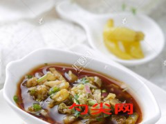白水魚加工法:太湖白水魚1條(重約1250克)宰殺制凈,將魚肉片下,加入鮮花椒100克,二鍋頭50克,鹽、胡椒粉各10克拌勻,腌制2小時,用電風扇吹干表面的水分,改刀成重約200克的大塊。