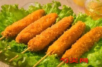 工藝:將500克雞胸肉清洗干凈,切成大小適中的肉塊,放入盆中備用。取泡多源E10克,用溫水溶解后倒入雞胸肉中,抓拌均勻,確保每塊肉都充分吸收,然后浸泡肉塊6到8個(gè)小時(shí)。將浸泡好的雞胸肉瀝干表面水分,加入切好的姜約10克、蔥約20克,再加入料酒約20克、味達(dá)蕾901號(hào)3克、生抽約20克、耗油約10克、鹽10克,打入一個(gè)雞蛋約50克,繼續(xù)抓拌均勻,腌制30分鐘。稱(chēng)取低筋面粉260克、淀粉80克和面欣酥B2克,混合均勻。取一部分混合粉加水調(diào)成面糊,剩余部分混合粉則用來(lái)制作鱗片,通過(guò)噴壺噴入適量的水,用手輕輕搓成鱗片狀備用。將腌制好的雞胸肉用簽子串成串,確保每串雞肉的量和分布均勻。將串好的雞胸肉先裹上一層調(diào)好的面糊,確保面糊均勻覆蓋在雞肉表面,接著再裹上一層鱗片,用手輕輕按壓,使鱗片牢固地粘附在面糊上。鍋中倒入足夠的食用油,加熱至油溫達(dá)到160度左右。將裹好鱗片的雞胸肉串逐一放入鍋中,保持中小火慢炸,適時(shí)翻動(dòng)雞肉串,確保受熱均勻。炸至雞肉表面金黃酥脆,內(nèi)部熟透即可撈出,控油后棒棒雞制作完成。
