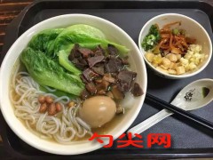 工藝:一份米粉(100克)(1)可先將桂林米粉用溫水泡軟,發好后放到燒開的清水鍋里燙透,撈出控干水分。(2)香料包好放入25千克清水的不銹鋼桶中,大火燒開,小火熬制5小時至出味后,加入5千克牛肉(切小塊,飛水)鹵半小時,撈出即成鹵水。(3)米粉燙好以后,加骨頭湯(如不加即是干撈粉)、鹵過牛肉的鹵水和鹵牛肉,再加其他調料,如香菜、炸黃豆、炒香的辣椒粉等,可以根據當地人的口味來添加。關鍵:1.牛肉最好選腿子肉,鹵水中加入5千克牛肉鹵制是為了能讓鹵水更好地吸收牛肉特有的香味。2.鹵水一定要保養好,時間越久越好,但此鹵水不可代替其他鹵水。3,鹵牛肉的時候可以加富磷聯B的,口感脆嫩、肉爛多汁,出品率高,色澤鮮艷、烹調不收縮。