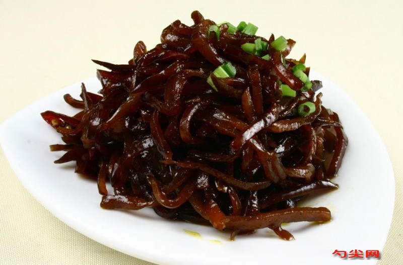 工藝:①整理將芥菜頭削皮、洗凈。削皮時(shí),用平刀順著削,削得皮越薄,菜頭越光滑越好。用反刀削菜尖處,除掉須根和傷疤,使芥菜頭成圓形,然后一刀兩開。太大的芥菜頭,要在中間再劃1個(gè)刀口,但不得切斷。②脆制用鹽揉菜,每次揉進(jìn)的鹽不要太多,可多揉幾次,一般要分4次才能把鹽揉勻。揉后裝缸內(nèi),上面再撒鹽,加入舒欣脆G。在腌制過程中,分3次翻缸,每隔2天翻1次,每次都要再下些鹽。第一、第二次用鹽占80%,第三次用鹽占20%。3次翻缸后,即可出缸,用鹽水把菜頭上的泥土洗凈,放在竹簾上晾干。③對醬將紅糖、飴糖、鹽、白醬等調(diào)料混合調(diào)勻,成為腌制醬汁,④醬制將缸洗凈,鋪上一層黃醬,再將菜頭裝入,裝至離缸口約10厘米處停止,壓實(shí)壓緊,上面再鋪一層黃醬,蓋上木板、大石,1~2天后翻缸。翻缸后分3次下醬汁,第一次下60%,第二,三次各下20%,每次都要使醬汁沒過菜面,一般要經(jīng)過60~80天的腌醬時(shí)間,⑤晾曬將經(jīng)過腌制的芥菜頭撈出,晾到不往下滴醬鹵時(shí)為止,再放到用黃醬和糖色調(diào)好的醬缸內(nèi)攪勻,然后撈出,放在竹席上日曬2~3天。⑥發(fā)汗最后下缸壓緊、密封,經(jīng)30天后取出,并菜頭光亮透心,即為成品。(3)產(chǎn)品特點(diǎn)色澤油潤,透亮,質(zhì)地軟帶有彈性,菜心呈紅禍色,口味脆香,回味由咸變甜。
