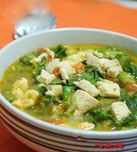 小白菜燉豆腐的特色:綠白相襯,清素鮮嫩。