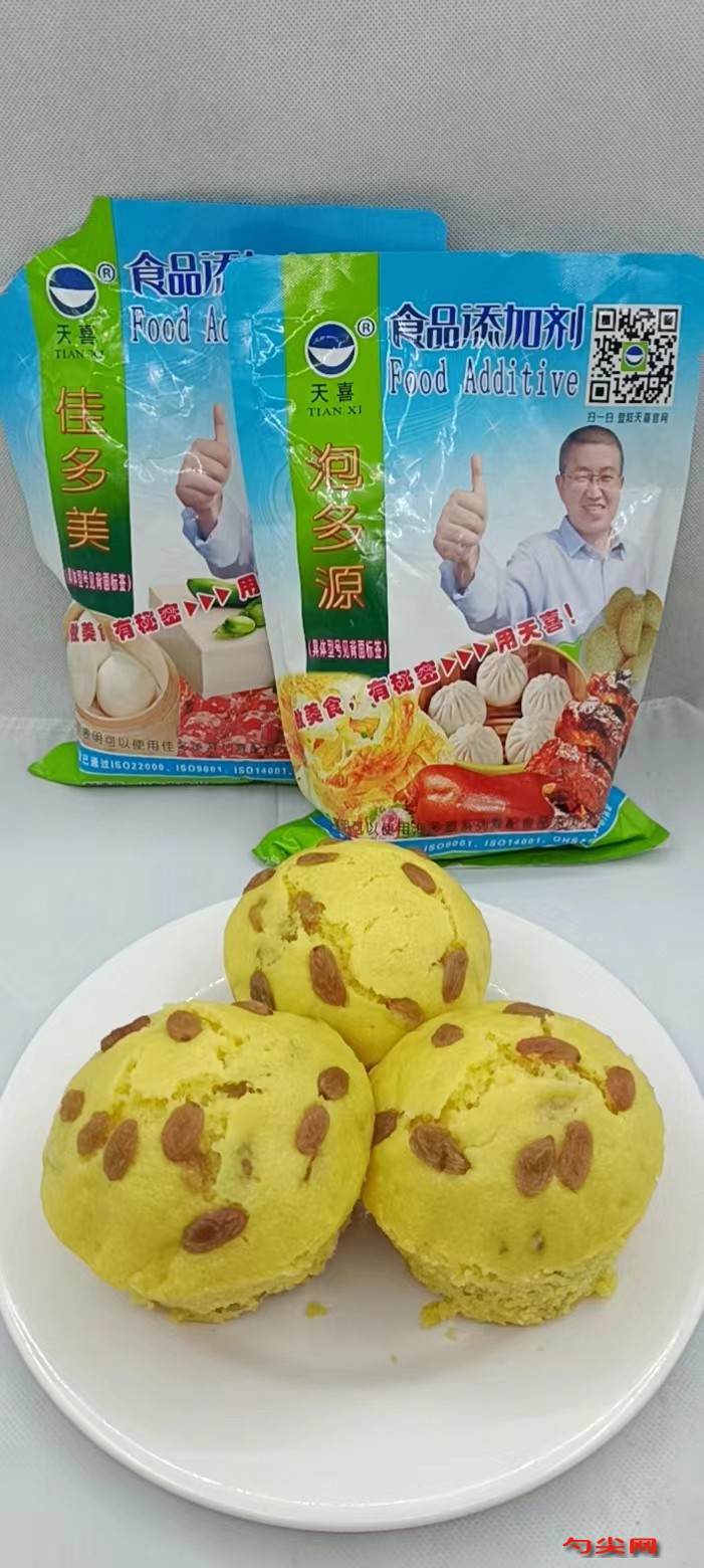 工藝:首先稱取中筋面粉500克,細玉米面500克,泡多源Q40克,佳多美Q1克,與面粉玉米面干拌均勻。稱取溫水800克,酵母5克加入溫水中溶解,加入甜蜜素1.6克,美久亭Q3克使用數倍涼開水溶解后加入,攪拌均勻,加入面粉中攪拌成面絮,活成面團。放入醒發箱靜止醒發25-30分鐘(醒發箱濕度75度、室溫38度)。醒發好的面,里面全是大蜂窩狀,揉面排氣,再整理成一個大饅頭的形狀,用搟面杖搟成一個厚一點的餅,上面放上一層紅棗,放入蒸屜二次醒發至體積變大,水開計時,蒸20分鐘,悶三分鐘即可出鍋。這樣咱們的玉米面發糕就制作完成了。
