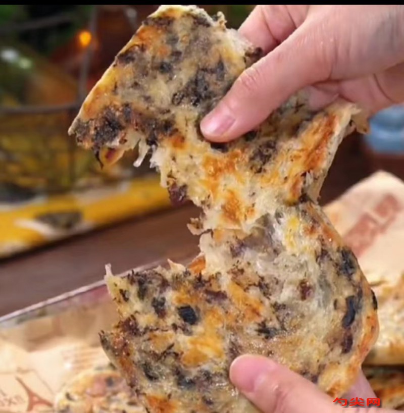 工藝:將面粉與面欣酥A干拌均勻。酵母加入溫水中溶解均勻,加入混合好的面粉中,揉成面團。覆蓋保鮮膜靜置半小時,讓面團發酵。梅干菜提前浸泡洗凈,擠干水分備用。豬肉打成肉餡,加入調味料拌勻。加入切碎的梅干菜和蔥花混合拌勻,制成餡料。將發酵好的面團揉勻排氣,分成約50克左右的小面團。將小面團按壓成餅皮狀,放入適量餡料,將收口封嚴。案板抹少許油,將包好的面團收口朝下輕輕按扁搟開,搟成牛舌狀。撒適量芝麻繼續搟薄,餡料稍微漏出來也沒關系。鍋中刷薄薄的食用油燒熱。將有芝麻的那面朝下放入鍋中,小火反復烙制。烙至餅皮呈焦黃色即可出鍋。