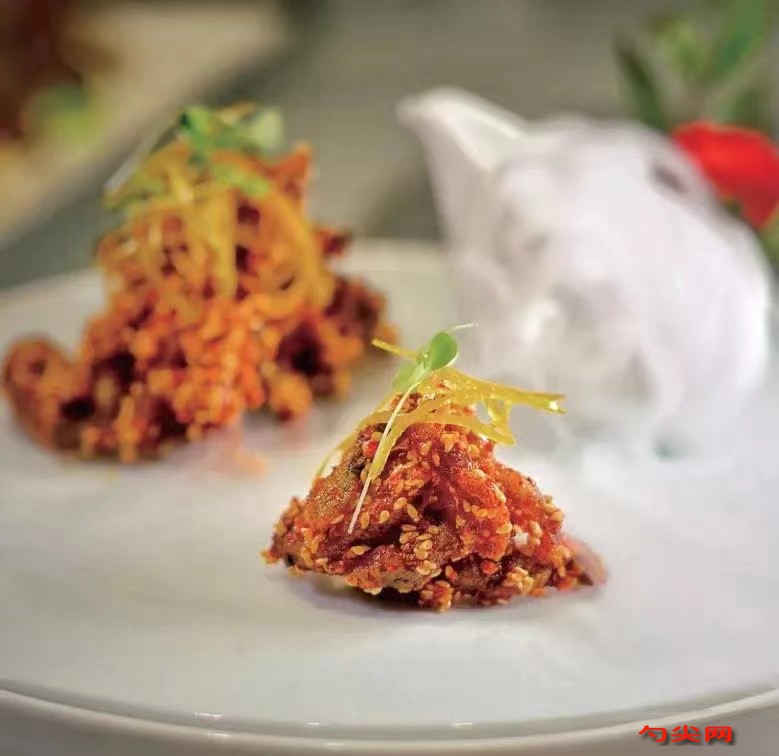 工藝:將切好的鱔片放入碗中,加入料酒、鹽、胡椒粉和少許花椒粉,抓勻后腌制15分鐘。將腌制好的鱔片均勻裹上豌豆粉與玉米淀粉的混合物,確保每個(gè)鱔片都被充分包裹。鍋中倒入菜油,加熱至五成熱時(shí),放入裹好粉的鱔片,小火慢炸至金黃色,撈出瀝油。鍋中留少許底油,放入陳皮絲、辣椒粉、花椒粉和白糖,小火翻炒至白糖融化并呈現(xiàn)焦糖色。加入炸好的鱔片,快速翻炒均勻,使鱔片充分吸收調(diào)味料的味道。將炒好的鱔片盛出裝盤,撒上適量的芝麻,即可上桌享用。