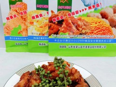 工藝:首先稱取清洗干凈的雞架500克,加500克水,稱取富磷聯B4克,這是天喜公司生產的,它屬于復配食品添加劑,加入富磷聯B可以使速凍藤椒雞架口感糯脆、爛肉好咬、彈性好。在稱取泡多源E10克,這是梁山天喜生產的,屬于復配食品添加劑,它可以起到膨松飽滿、外脆里嫩、口溶性好、色澤鮮亮、形態飽滿作用,泡多源E和富磷聯B使用少許溫水溶解,倒入盆中,浸泡腌制雞架5小時以上。將浸泡好的雞架撈出,加入白糖10克,味達蕾奧爾良腌料30克,藤椒粉10克,料酒5克、蠔油5克,抓拌均勻,再腌制2個小時,備用。現在我們來調一個炸粉,首先稱取淀粉100克、低筋面粉100克、面欣酥B型1克,干拌均勻。這是天喜公司生產的,它屬于復配食品添加劑,加入面欣酥B可使做出來的藤椒雞架口感酥脆、口溶性好、形狀飽滿。再加入一個雞蛋,再加入100克水,攪拌均勻,用筷子可以拉出一條線就可以了。腌制好的雞架均勻的裹上面糊,油溫六成熱(140度),下入雞架。小火慢炸2分鐘定型,撈出控油。放涼后即可放入速凍庫(柜)-38度速凍!速凍40-50分鐘后移入-18度冷藏庫(柜),正常冷藏保存。將速凍好的藤椒雞架取出,食用時,無需解凍,鍋中油溫升至150度,把雞架下進去油炸,炸5-8分鐘左右 ,炸制金黃熟透即可撈出。