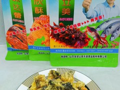 工藝:首先稱取500克鮮魚皮,冰水750克,加入海立美M 5克,它是梁山天喜生產(chǎn)的,屬于復(fù)配食品添加劑,起到膨松飽滿、不易脫水干縮的作用,倒入冰水中攪拌溶解, 放入魚皮再次攪動(dòng),浸泡5小時(shí)。浸泡完成,用清水清洗一遍,放入盆中,加入味達(dá)蕾902號1克,它是梁山天喜生產(chǎn)的,屬于復(fù)配增味劑,起到增加鮮味去除腥味的作用,再加入鹽5克,五香粉3克,蔥絲姜絲各10克,抓拌均勻,腌制半小時(shí)?,F(xiàn)在我們來調(diào)一個(gè)炸粉,首先稱取淀粉100克、低筋面粉100克、加入面欣酥B型1克,干拌均勻。這是天喜公司生產(chǎn)的面欣酥B,它屬于復(fù)配食品添加劑,加入面欣酥B可使做出來的油炸魚皮口感酥脆、口溶性好、形狀飽滿。再加入一個(gè)雞蛋,再加入250克水,攪拌均勻,用筷子可以拉出一條線就可以了。鍋中油溫升至160度,把魚皮掛上一層炸粉胡,下進(jìn)去油炸,中小火慢炸炸,炸制金黃熟透即可撈出。