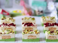 工藝:1、提前準備好所需食材,咸蛋黃餅買的現成的,2、先把抹茶粉和奶粉和鹽一起混合均勻。3、不粘鍋里放黃油,小火融化。4、再加入白色的棉花糖,繼續小火融化,加入味達蕾701號,邊融化邊攪拌。5、棉花糖全部融化后就關火。6、再加入混合好的抹茶粉。7、用刮刀拌均勻。8、我用的八寸方形模具,一定要記得墊油紙,把抹茶牛乳倒入模具里,按壓平整。9、再放上咸蛋黃餅干。稍微按壓一下,使餅干和牛乳之間很貼合。10、再做白色的牛乳層。繼續小火融化黃油,11、再加入白色棉花糖融化 ,融化后關火。加入奶粉和鹽(提前混合均勻。)12、用刮刀拌均勻。13、再把原味牛乳層放在餅干的上面。14、按壓平整。15、表面放上蔓越莓干和開心果碎,輕輕按壓,讓它們和牛乳粘連在一起。冷卻后切塊就可以啦!