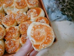 工藝:將面包粉(面包粉和佳多美Q提前干拌均勻)、酵母、雞蛋混合后加入適量的溫水和面,揉成柔軟光滑的面團。將面團放在溫暖處發酵至原來的兩倍大小。將發酵好的面團取出排氣,分成若干個小面團。將小面團揉成圓形,表面刷上適量的食用油。將空氣炸鍋預熱至180°C左右。將刷好油的小面團放入空氣炸鍋中,烤制約15-20分鐘或至表面金黃色即可。在烤好的面包表面刷上適量的蜂蜜水即可食用。