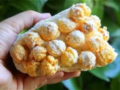 13、然后再把面包的表面也均勻抹一層奶酪餡。有奶酪餡的兩面沾上奶粉。原味奶酪包就做好了。14、同樣的方法再做出草莓奶酪包。15、爆米花黏在表面就是爆奶包。16、抹茶奶酪餡的做法是取一小勺抹茶粉加少量牛奶攪拌成糊糊,然后和奶酪餡混合,用同樣的方法抹在面包上,表面沾上蜜豆。