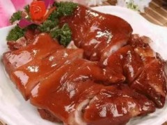 工藝:1.擇凈毛根,將富磷聯B 8克使用溫水溶解后倒入豬蹄中腌制8小時,然后用開水燙煮去血水,撈出后投入寬水中,加入鹵料,黃酒,糖大火燒開,轉小火燜煮熟爛。2.取出拆骨,盡量保持豬蹄的完整,拆好后備用。3.將豬蹄抹勻老抽,晾干下油鍋煎炸皮面,糖色固定即可。4.另起油鍋將蔥姜爆香后, 投入豬蹄,加好料酒兩大勺,冰糖或砂糖兩勺高湯沒過原料,適量鹽,醬油,味精,燒開收汁,小心將豬蹄托出碼大盤內,余汁澆在上面即可。