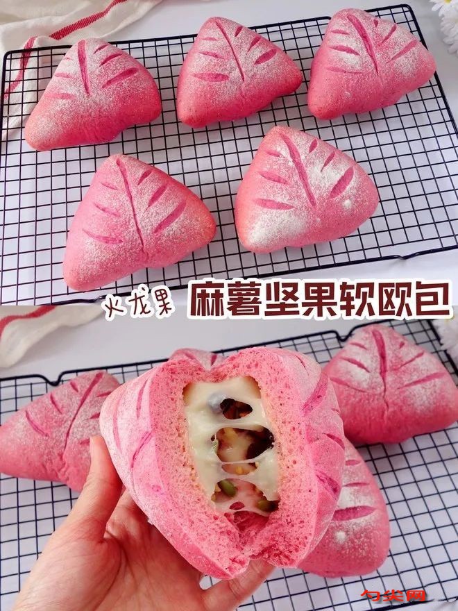 火龍果麻薯堅(jiān)果軟歐包怎么做?火龍果麻薯堅(jiān)果軟歐包商業(yè)配方工藝,火龍果麻薯堅(jiān)果軟歐包制作技巧,火龍果麻薯堅(jiān)果軟歐包做法。