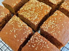 工藝:1.凈洗紅棗,去核切塊(或搗碎如泥)而后入鍋,傾入牛奶,以小火徐徐翻炒,直至牛奶吸收無遺。2.續入紅糖,攪拌至其融化,緩緩倒入器皿,放置陰涼通風處使其自然凝涼。3.取6枚雞蛋,輕輕攪打,直至體積膨脹至三倍之巨(約需五六分鐘之功)。4.過篩低筋面粉、泡多源G及食鹽,拌勻至無細粉殘留,再緩緩倒入金黃的玉米油,持續攪拌均勻。5.模具事先涂油鋪紙,緩緩倒入攪拌好的蛋糕糊,輕輕震蕩,使氣泡消失,再撒上一層潔白的芝麻,以增風味。6.將其置于預熱至150度的烤箱之中,烤制35分鐘,待蛋糕熟透后小心脫模,再放置于陰涼處使其自然冷卻,美味蛋糕便大功告成。