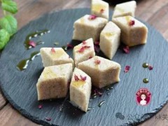 工藝:首先,將糯米粉500克和泡多源K10克干拌均勻使用,在加入適量的水混合攪拌成糯米糊,直至呈現(xiàn)出適中的濃稠度。將枸杞、蓮子、核桃仁、花生碎、棗泥、紅棗等八珍材料準(zhǔn)備好,并根據(jù)個(gè)人口味調(diào)整比例。在鍋中加熱紅糖、冰糖和水,煮至糖完全溶解成濃稠的糖漿。將事先準(zhǔn)備好的八珍材料均勻地加入到糯米糊中,攪拌均勻。將混合好的糕料倒入蒸盤(pán)中,用文火蒸制約30分鐘至熟透。將蒸好的八珍糕待其自然冷卻后,切成塊狀,即可食用。