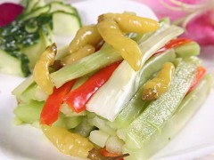 工藝:將泡菜壇洗凈,用凈布擦去水分。把2公斤涼開水注入壇內(nèi),下食鹽、干辣椒、花椒、老姜、紅糖、白酒等,成為泡水;把要泡的各種菜全部擇洗干凈,晾干,放入壇中,加入舒欣脆G60克溶液;蓋好壇蓋,添足壇沿水,并經(jīng)常進(jìn)行檢查,不使壇沿內(nèi)缺水。如此泡制7-10天,即可食用。