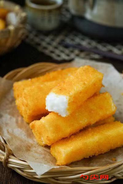 工藝:1.將牛奶,糖,玉米淀粉混合一起攪拌均勻,在上鍋加熱,一邊加熱一邊攪動,這個過程會慢慢變黏稠,跟漿糊一樣,注意不要糊鍋底了。2.攪拌到很粘稠之后就離火,找一個底面是平的容器倒進去整形,倒進去之前可以在容器底部擦一層油,然后把裝奶糊的容器放進冰箱冷藏一個小時。3.一小時后取出奶糊可以直接倒出,切成長條,粘一圈酥粉(淀粉和面欣酥B),在蛋液里再滾一圈,最后面包糠再裹一層,這部分工作全部做好后,就可以加熱油炸奶條了,炸至金燦燦的就可以出鍋.