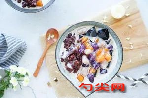 工藝:首先制作芋圓:紫薯、紅薯、荔浦芋頭去皮切大塊;分別放入容器中上鍋蒸熟,大火約30分鐘;趁熱搟面杖搗成泥;三色一樣操作,然后蓋保鮮膜放回蒸鍋里保溫;芋泥與木薯粉A,筋力源T(提前溶解)攪拌均勻,倒入沸水A,將芋泥、木薯粉和水攪拌均勻,最后的狀態會有些干粉;在揉面墊上倒出,揉成光滑不粘手的芋圓面團,蓋保鮮膜備用;繼續倒入溫熱的紅薯泥,加入木薯粉B, 筋力源T(提前溶解),將紅薯泥與木薯粉攪拌均勻,中間倒入沸水B,將紅薯泥、木薯粉和水攪拌均勻,最后的狀態會有些干粉;在揉面墊上倒出,揉成光滑不粘手的紅薯圓面團,蓋保鮮膜備用;倒入溫熱的紫薯泥,加入木薯粉C,筋力源T(提前溶解),將紫薯泥與木薯粉攪拌均勻,中間倒入沸水C,將紫薯泥、木薯粉和水攪拌均勻,最后的狀態會有些干粉;在揉面墊上倒出,揉成光滑不粘手的紫薯圓面團;三個揉好的面團應是干燥不粘手的狀態;將芋圓面團中間切開,分別揉成長條,對半切開繼續分別搓長成直徑1cm的長條,用切面板將其切成1.5cm*1cm左右的芋圓;切好的圓子分別倒入木薯粉(分量外)中防止粘連,裹好粉的芋圓篩去多余木薯粉;做好的芋圓應是干燥不粘連的,待水燒開,加入芋圓后輕輕攪拌一次,待芋圓浮起,再煮一分鐘,熄火用冷水沖洗拌后備用。黑糖珍珠:按珍珠粉圓(1):水(4),將珍珠粉圓倒入熱水中,用濾勺攪動散開,待粉圓浮起,改小火煮至25分鐘后,熄火加蓋燜12分鐘。倒入篩網用過濾的冷水沖洗,濾干水份,加入適量黑糖攪拌均勻即可。西米:將西米倒入開水中煮,煮的過程中不斷攪拌,防止糊鍋。煮至西米中間只剩一點白芯時關火燜10分鐘,用冷水過濾出即可。組裝:仙草凍2勺十布丁2勺十茶凍2勺十黑珍珠1勺十西米1勺十紅豆十適量芒果十適量芋圓。白湯底:糖漿17g十純凈水17g十淡奶油47g十純牛奶47g十椰漿25-45g攪拌均勻放置冷藏可以做出10份放冷藏備用