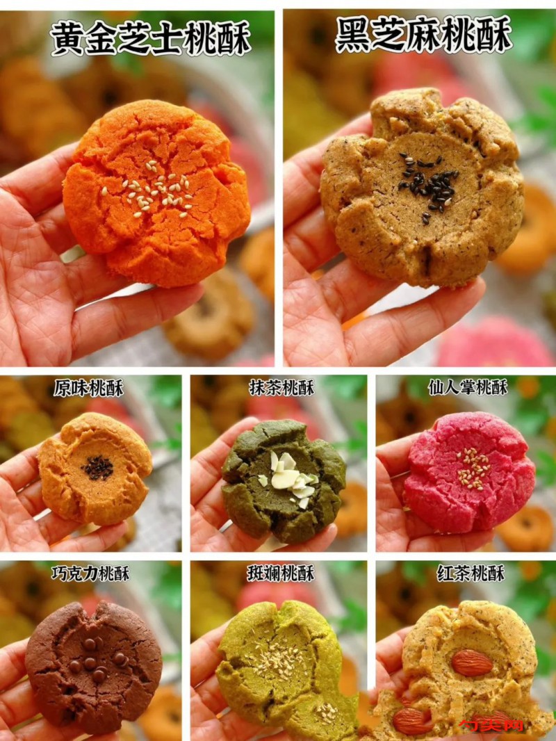 抹茶桃酥配方:玉米油140克雞蛋1個(gè),糖6O克面欣酥F6克,低筋粉25O克,抹茶粉10克。