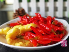 配方:尖鮮辣椒500克、鹽60克、白酒、舒欣脆G10克、白糖、白酒、醋適量。