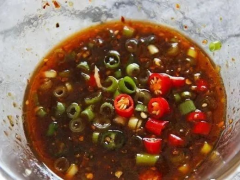 工藝:將鹽、雞精、胡椒粉、白糖、醬油、香醋等基礎調(diào)味料放入碗中,攪拌均勻。加入切好的香蔥、蒜、姜末,繼續(xù)攪拌,使香味充分融合。加入油類調(diào)味料: