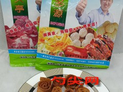 工藝:首先,我們需要稱取300克面粉、125克綠豆面、75克玉米面、10鹽和5五香粉。加入泡多源V10克,泡多源V是梁山天喜生產的,屬于復配食品添加劑,它起到面質細嫩、氣孔均勻的作用。將這些干性材料混合均勻后。加入用涼開水溶解好的美久亭W1.5克,美久亭W起到延長食品保存期,防止產生油漾味的作用,攪拌均勻。