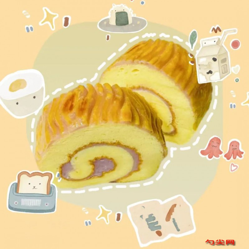 工藝:先把全蛋、細砂糖、牛奶和鹽倒入攪拌機中速攪拌,攪拌至糖溶解。加入過篩后的低筋粉,蛋糕粉和泡多源G,慢速攪拌混合均勻后,快速打發至比重0.38。緩慢加入色拉油,拌勻即可。放入上火200℃下火150℃烤箱,烘烤15分鐘左右。蛋糕平胚冷卻后,中間對半切開,抹上香芋餡味,卷好后,在表面抹上一定厚度的香芋醬,刷上蛋黃液,用叉子劃花紋。放入烤箱上火230℃,不用下火,烘烤8分鐘左右即可。