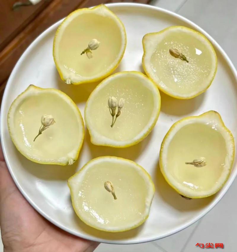 工藝:1.準備檸檬殼容器:將2個檸檬洗凈,從中間切開,小心地用勺子挖出果肉,盡量保持檸檬殼完整,作為果凍的容器。挖出的檸檬果肉榨汁備用。2.泡軟茉莉花:將1大匙干茉莉花用約100毫升溫水浸泡5分鐘,使花瓣軟化并釋放香氣。之后,撈出茉莉花備用,浸泡的水可留一小部分用于煮汁,增加花香。3.制作檸檬汁液:將150毫升新鮮檸檬汁、泡軟的茉莉花及茉莉花水(適量,約30毫升)一同倒入小鍋中。加入20克白涼粉和佳多美A04,充分攪拌溶解,在加入適量白糖,避免結(jié)塊。4.加熱煮沸:開中小火加熱檸檬汁液,不斷攪拌,直到溶液開始沸騰,確保白涼粉完全溶解,整個過程大約需2-3分鐘。煮沸后立即離火,避免過度加熱導(dǎo)致口感變差。5.填充與冷藏:將煮好的檸檬汁液稍微冷卻幾分鐘,但不要完全冷卻至凝固點,此時液體應(yīng)略顯稠厚。將溫?zé)岬臋幟手壕従彽谷胫皽蕚浜玫臋幟蕷と萜髦校s9分滿即可,以防溢出。放置至室溫,然后轉(zhuǎn)移至冰箱冷藏室,冷藏至少4小時或過夜,直至果凍完全凝固。