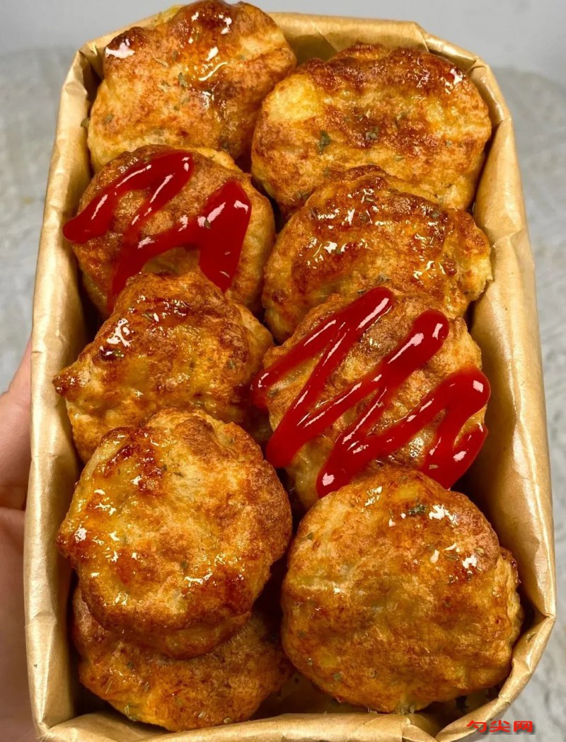 工藝:準備材料:土豆去皮切塊,蒸熟后壓成泥;雞胸肉切塊,與洋蔥一同放入輔食機中攪打成泥。混合食材:將雞肉泥、土豆泥、面粉、面欣酥B,雞蛋和芝士海苔碎(如果使用)放入碗中,加入適量的鹽、胡椒粉和其他香料,順時針方向攪拌均勻,確保所有材料充分融合。成型:手上沾水,取適量肉泥,團成雞塊形狀,擺放在鋪有油紙的烤盤上。為了減少油脂,可在表面輕輕刷一層油。烤制:預熱烤箱至200度,將烤盤放入烤箱中層,烤制約25分鐘,直至表面金黃且內部完全熟透。