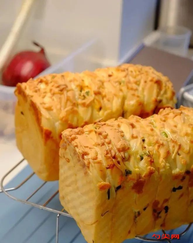 工藝:1、最先把黃油拿出來,切成小塊軟化,速度能快一些。我是秋天做的天氣比較冷,夏天需要把水混合砂糖放冰箱里先冷藏來降溫。2、混合除黃油外的所有材料。3、和面到延展階段,均勻放入小塊黃油,之后到完全延展階段,拉出大片薄膜。4、團(tuán)成圓形,在28度的環(huán)境下發(fā)酵70分鐘。我家太冷了,我放到蒸箱里發(fā)酵的,30度,1小時(shí)。5、發(fā)酵至2倍大,分成兩部分,團(tuán)成圓形,醒面20分鐘。之后搟成上圖寬23,長(zhǎng)30的長(zhǎng)方形。6、一半抹上沙拉醬,放適量新鮮香蔥和肉松。7、對(duì)折,繼續(xù)搟成23cm長(zhǎng),20cm寬的長(zhǎng)方形。如圖切成8條,不要切透,每一條擰到擰不動(dòng)為止。8、從上往下卷,之后放到450g吐司盒里。9、兩個(gè)450g吐司的量。在蒸箱里進(jìn)行第二次發(fā)酵,36度,濕度85,約1小時(shí)。10、發(fā)酵到8分滿,擠上沙拉醬,之后撒入馬蘇里拉芝士。我是西門子嵌入烤箱。“4d熱風(fēng)”選項(xiàng)155度,預(yù)熱10分鐘,烤30分鐘。11、出爐。
