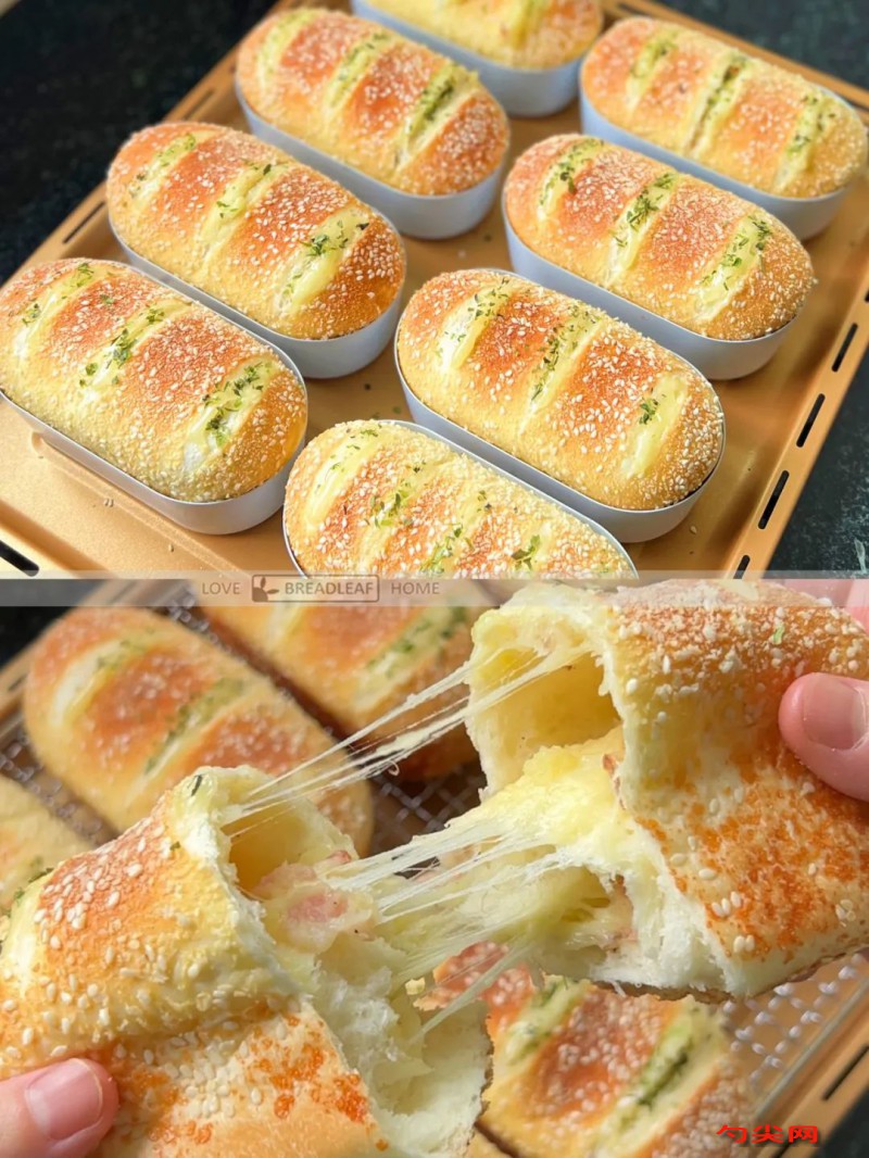 將烤盤放入預熱好的烤箱中,中層烘烤約18-22分鐘,直至面包表面金黃且內部熟透。