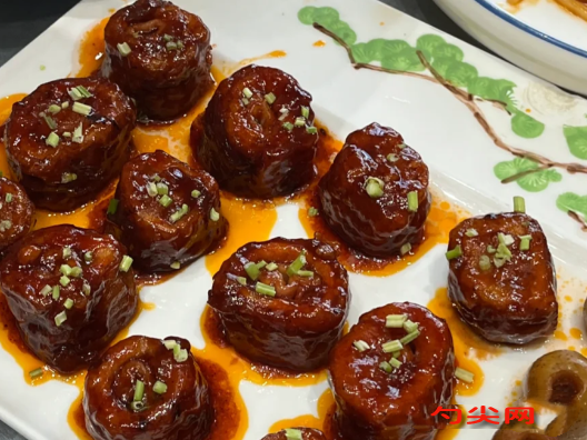 將烹飪好的九轉大腸裝盤,可撒上蔥花、香菜等作為點綴。