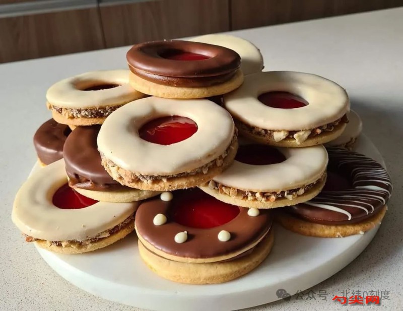 9. **組裝**:如果想要制作夾心甜甜圈,可以在兩個甜甜圈之間涂一層果醬,如蘋果果醬,然后輕輕壓合。