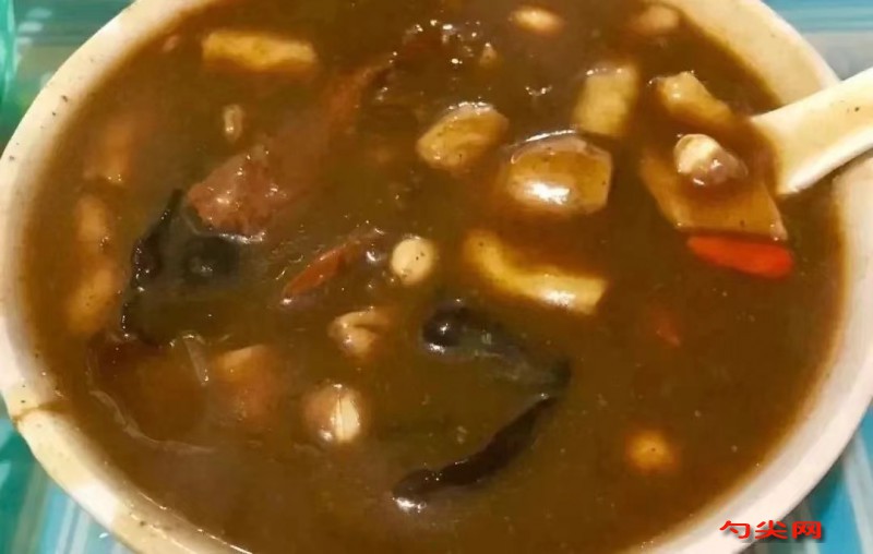 豬骨頭:5干克、面粉:1500克、筋力源A8克,鮮姜末、大蔥、去皮花生米:各100克、粉條:500克、海帶絲:200克、油炸豆皮、雞蛋皮絲:各150克、菠菜:250克、味達蕾901號:3克,黑胡椒粉:15克、五香粉:8克、鹽、雞精:各20克、芝麻油:150克