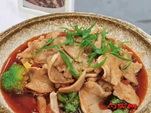 5. 盤內(nèi)放入剩余的蔥白片、豬舌片,擺成橋梁形,將碗內(nèi)味汁攪勻,澆在上面即成。