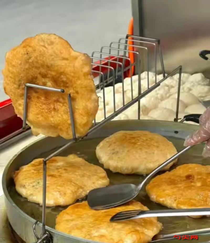 鍋鐺預熱至160-200度左右淋油,案板抹油,將面扣在案板上,用刮板將面切開兩半分別整理均勻,下劑子,拍扁(中間厚邊緣薄)刷上花椒面并且包入餡料,包好拍扁下鍋淋油蓋蓋,底部金黃翻面,烙至兩面金黃熟透即可出鍋。