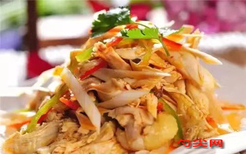 核心提示:主要采用涼拌的方法:雞在清水中煮過之后,手撕成塊,將切成絲的尖椒、花椒油、鹽、味精、香油等撒在撕好的雞肉上。