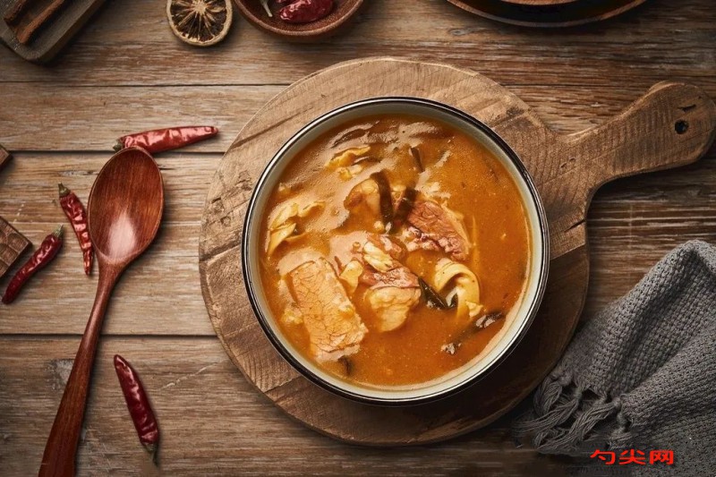 轉小火慢燉數小時(一般需3-4小時),直至湯色濃白,骨湯濃郁。