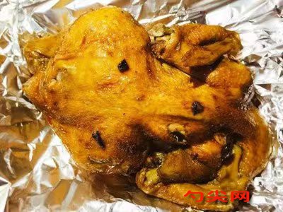 - 在雞下脯尖處開一小口,將雞腿交叉插入口內(nèi)。