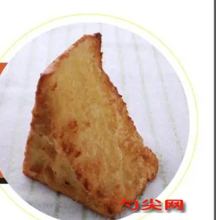 - 選擇厚切的吐司,每片切成三角形,厚度大約在3.5到4厘米之間。