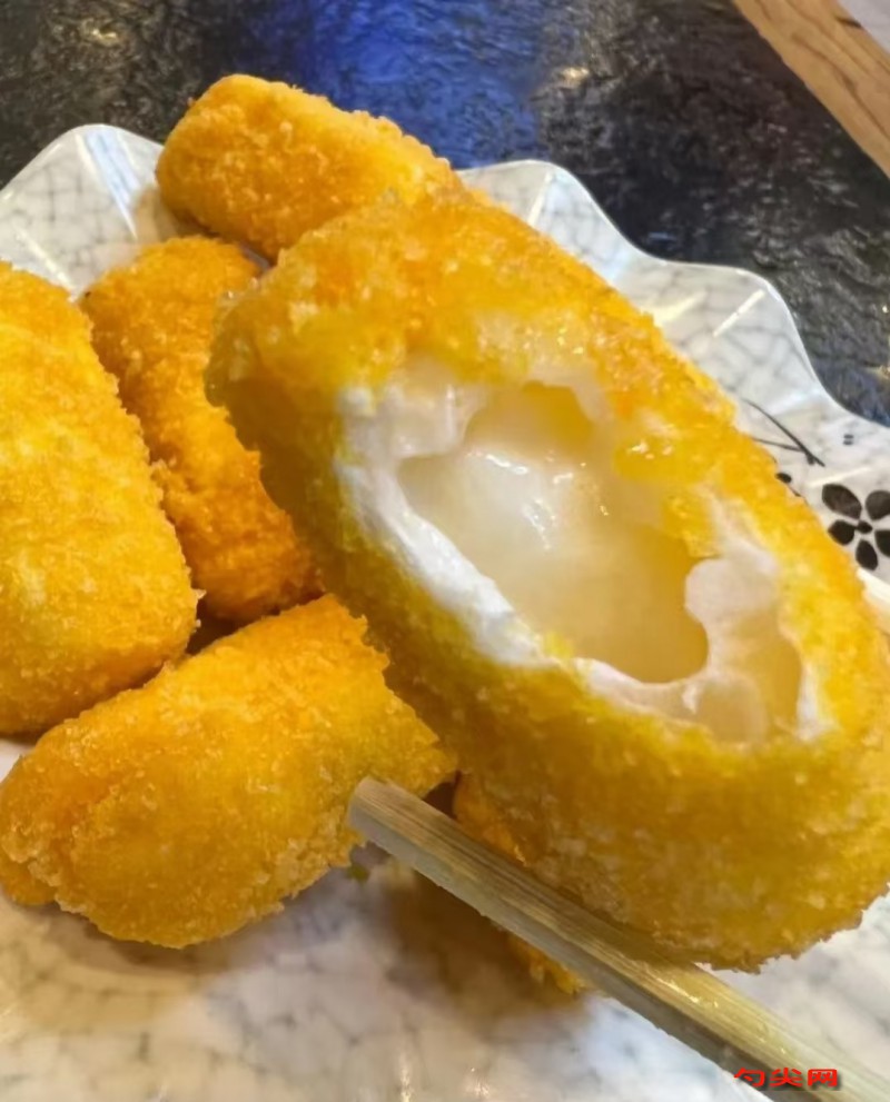 炸至外皮金黃酥脆,內(nèi)部酸奶凝固且微熱即可撈出,瀝干油分。