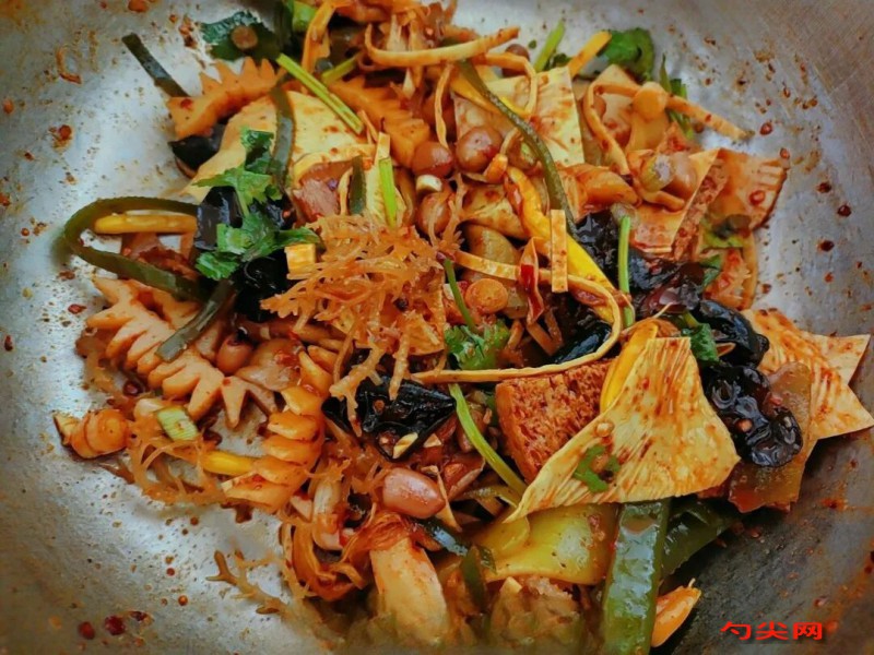 如豆腐皮、豆腐絲、腐竹等(干的,在當地市場有售)制作時提前2小時浸泡,直至泡軟泡開后即可,撈起瀝干水分,再飛水。待涼后加入調料。先加入紅油、十三香、姜末、蒜米、芝麻油、花椒、精鹽、雞精各種調味品適量、(少許鮮味王、)品味,看色,紅油增多或適量減少根據當地市場而定。