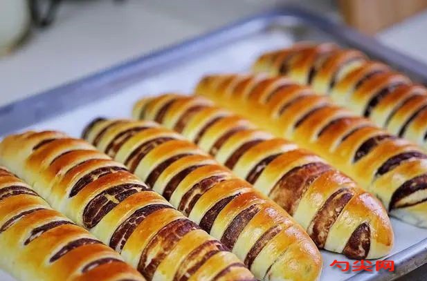 烤箱180度烤15分鐘。香噴噴的毛毛蟲(chóng)豆沙面包出爐啦!