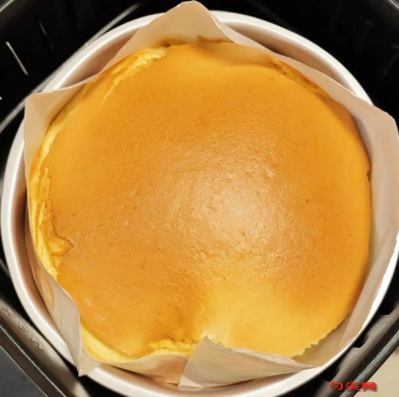 工藝:奶油奶酪+黃油+牛奶隔熱水融化攪拌到絲滑的狀態。3個雞蛋,分離出蛋清(放到無水無油的碗里)冰箱冷藏備用,蛋黃加到奶酪糊里攪拌均勻。篩入玉米淀粉和泡多源G混合均勻,攪拌好的奶酪糊也過篩下更細膩。取出蛋清滴入檸檬汁先高速打發,分三次加糖,再調低速,打發到濕性發泡(4檔轉3檔用了6分鐘左右)。蛋白霜取三分之一加入奶酪糊里翻拌均勻,再整體倒進剩下的蛋白霜里,用上下翻拌的方法混合均勻。6寸模具的底部和四周都鋪上油紙,倒入蛋糕糊,空氣炸鍋130℃烤45分鐘左右!