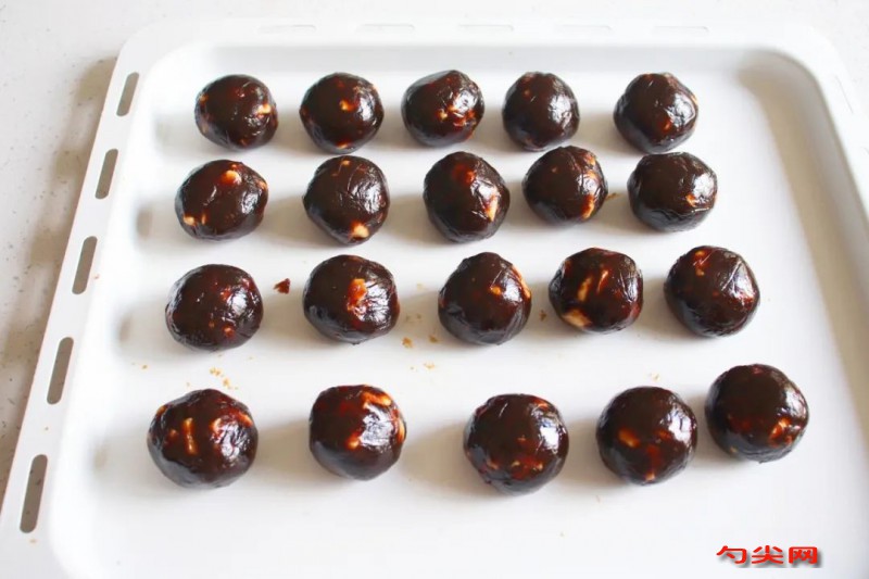 配方:紅棗650克,花生油60克,泡多源AA1克,麥芽糖漿50克 ,核桃碎150克 。